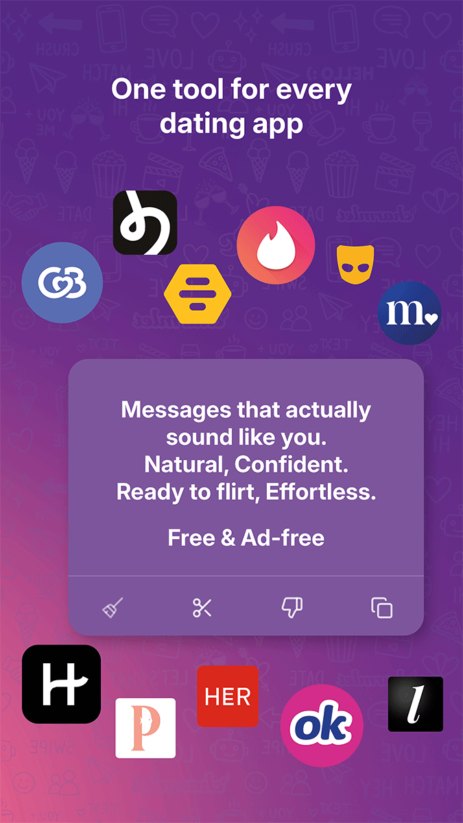 Suggestions are starting points. You can edit, adjust, or combine them in the message field of your dating app before sending.